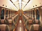 車内の様子はこんな感じです。電球色の蛍光灯によって暖かみのある雰囲気になっています。また側面の窓は楕円形になっていて、いっそう柔らかな印象を与えます。運賃に数百円プラスするだけでこれほどゆったりした列車に乗れるのが実に嬉しく思います。