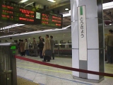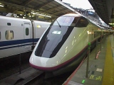事情があって自由席をとるために並ぶハメに(私たちは指定席取っていたんですが)。そのため、列車入線(7時14分)まで40分ほどホームで待っていました。その間に何本もの列車が出入りしているのを見てました。写真は、秋田新幹線「こまち」のE3系です。写真に映っている車両は試作車で、唯一ヘッドライトが運転席窓上に付いているタイプです。量産車では窓の下にライトがまとめて付いています。