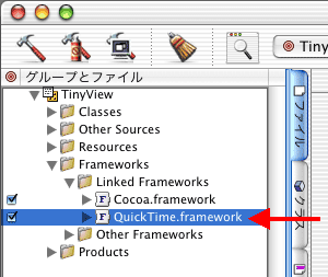 さらに、#import "MyDocument.h"の下に次の二つの宣言を加えて、QuickTimeに関するヘッダを読み込むようにしてください。