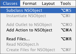 選択したら、ClassesメニューからSubclass NSObjectを選んで下さい(fig.06)。