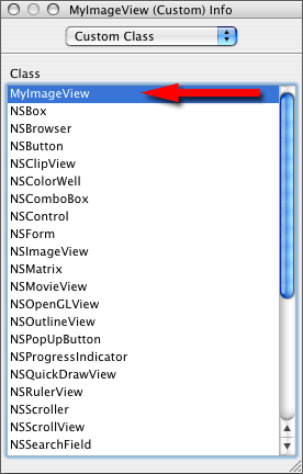 | [fig.06] CustomViewのクラスをNSViewからMyImageViewに変更する |