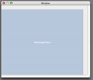 これは、MyImageViewクラスのインスタンスのサイズを、表示する画像に合わせて調節していないからです。この対処をプログラムで実装します。MyImageView.mを開いてください。現在のsetImage:は、次の様になっているはずです。