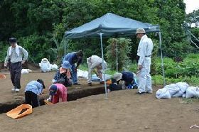 発掘調査には中央大学をはじめ諸大学の学生や他自治体教育委員会の埋蔵文化財担当職員、相模原市立博物館の市民ボランティアの方々が参加しました。