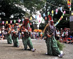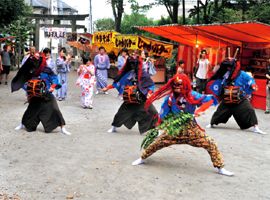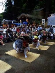 日本各地で見られる獅子舞は、大きくは一頭の獅子頭を一人の舞手が被る「一人立ち」と二人が入って担当する「二人立ち」に分けられます。市内の獅子舞は前者のもので、これは東日本を中心に分布しており、特に三匹の獅子を中心に構成される「一人立ち三匹獅子舞」の形態に分類されます。そして、三匹獅子舞が分布する地域は、その大半が福島、新潟を北端として栃木、群馬、茨城、千葉、埼玉、東京、神奈川の各県の、中部・東北南部から関東地方で占められており、神奈川県では他に横浜市や川崎市にあるほかは、相模原市や愛川町三増より南側では行われていません(例えば、箱根町の宮城野や仙石原で行われている「湯立獅子舞」などは別の系統のものです)。つまり相模原の三匹獅子舞は、県内のみならず日本における南限に位置付けられることになり、こうした点からも注目される民俗芸能と言うことができます。 実際の獅子舞では、三匹の獅子のほかに岡崎や天狗などが付いて一緒に踊ったり、唄が歌われたりとさまざまに行われており、それぞれの場所により共通する点や特徴的なところも見られます。各地区の獅子舞を巡る歴史や注目される伝承については、『相模原市史民俗編』をはじめ教育委員会が刊行した獅子舞の報告書に記されていますが、それらを参考として是非、皆様も一度訪れて見学されてみたらいかがでしょうか。祭礼の華やいだ雰囲気とともに、きっと地域の人々によって伝えられてきた獅子舞に触れて楽しく思い出に残る夏の1日を過ごすことができると思います(民俗担当 加藤隆志)。 *毎年の各神社での獅子舞の日時は変更されることがあります。必ずご確認の上、お出かけください。 |