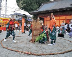 祭りの時にナマスをはじめ鯖と大根・里芋の煮物を作って食べることは、周辺の集落には見られず大変に珍しいものです。また、江戸時代までの神仏混交の様相を残す神官と住職の同席や、年番の引継ぎを盃事として行うなど特徴ある要素も保たれ、市域のさまざまな祭りの中でも特に注目されるものの一つと言えるでしょう(民俗担当 加藤隆志)。 |