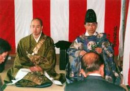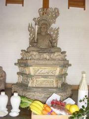 | 南区磯部の磯部八幡宮は、磯部のうちの上磯部地区の鎮守で祭礼は9月5日(前日の4日が宵宮)に行われます。この神社の境内には不動堂があり、中に納められている木造の不動明王坐像(ふどうみょうおうざぞう)は江戸時代に制作されたもので、装飾的な意匠や技術に優れた仏像として相模原市の指定有形文化財となっています。 ところで、神社の境内に仏像が祀られているということを奇異に思われる方もいるのではないでしょうか。ここでは紙面の関係もあって詳しく述べることはできませんが、実は江戸時代までは神社と寺院は密接な関係(「神仏混淆(しんぶつこんこう)」「神仏習合(しんぶつしゅうごう)」)にあり、神社の管理や祭祀を寺(「別当寺(べっとうじ)」)が行うことが一般的に見られました。そして、近世後期の天保12年(1841)に成立した『新編相模国風土記稿』によると、市内でも多くの神社の別当寺があったことが分かります。磯部の八幡社(現在の磯部八幡宮)も別当は仏像院という寺であり、八幡社には護摩堂があって不動が安置されていると記されていることから、不動像は仏像院の本尊であったことが考えられます。 この不動は特に火災除けにご利益があるとされ、祭祀は毎年3月28日に決まっていて今年(2012年)も午前11時から神社の総代の皆様が集まって実施されました。『相模原市史民俗編』によると、かつては別当の仏像院が祭りを執り行って護摩を焚いたといい、昭和32年(1957)頃までは子ども相撲が開かれたとありますが、現在ではこうしたことは無くなり、八幡宮の年間の行事の一つとして神職が祝詞を上げ、玉串を奉奠(ほうてん)するなど神式の作法に則って行われます。