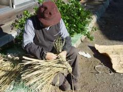 | かつて農家が数多くあった時代には、正月を迎えるに当たり、玄関などさまざまな所に飾る正月飾りを各家で作っていました。現在ではこうした自家製のお飾りを見かけることはほとんど無くなってしまいましたが、たまたま昨年(平成23年)の暮に、久しぶりにお飾り作りを見させていただくことができました。