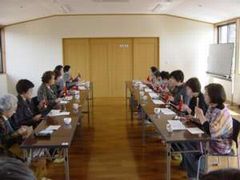 田名・堀之内地区の蚕影山の祠は堀之内自治会館の敷地にあり、隣りには男根型の大きなサイノカミ(道祖神)が並んでいることでも有名です。蚕影山の祠の中には金色姫(こんじきひめ)という女神が舟に乗っているお姿の像が祀られているのが特徴で、こうしたものをお祀りするのは他の地区にはあまり見られません。この像も養蚕の神として有名で、明治末から大正頃に八王子方面から買ってきたとも言われており、元々は4月18日と10月18日がお祭りで今ではこの縁日に近い日曜日に行われています。やはり『市史民俗編』によると、お祭りは春はその年の蚕の豊作を祈願し、秋は豊繭を感謝するもので、堀之内の念仏講中によって行われてきたのが昭和40年代に絶えてしまいました。しかし、蚕影山の和讃(わさん)は講中の女性たちによって続けられ、昭和51年(1976)には自治会の行事として復活して、午前中に和讃をあげ、午後からは自治会主催のお祭りを行うという現在の形になりました(ただし、秋には和讃のみが行われます)。 蚕影山の和讃の内容は蚕の由来を説くもので、金色姫という天竺(てんじく)の帝の姫君が継母のいじめに遭って孤島に追いやられたり土中に埋めたりとさまざまな苦難を受け、姫の身を案じた帝は桑の木で舟を作って姫を乗せて海に流します。舟は常陸の国(今の茨城県)の豊浦という地に流れ着いて権の太夫(ごんのたゆう)という土地の者が介抱したものの、ついに長路の疲れによって姫は亡くなってしまいます。すると姫の体は虫となり、その虫が桑の葉を食べて成長して繭を作って絹ができたというあらすじで、この物語が哀調を帯びた独特の節回しで唄われます。今年の蚕影山和讃は、新築されたばかりの自治会館の二階で自治会長や自治会婦人部の皆様が立ち会う中、13名の女性の方々によって午前10時30分前から約20分ほどの時間で行われました。
