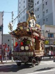 八王子祭りの大きな見所に、八幡八雲神社及び多賀神社の宮神輿の渡御と並んで各町内から出される山車があります。八王子の山車は上側に人形を飾ったり、全面に彫刻を施した彫刻山車の祭りとして江戸時代から著名でした。しかし、昭和20年(1945)の八王子空襲によって多くの山車が焼失してしまいました。それでも焼け残った山車や人形を修理したり新たに再建するなど、今では19台の山車が祭りに参加し、賑やかな囃子を奏でながら自分たちの町内や甲州街道の巡行を行います。