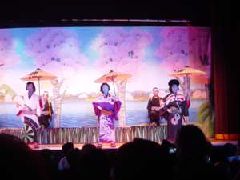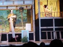 | 復活後21回目を迎えた藤野村歌舞伎が、今年は神奈川県立藤野芸術の家クリエーションホールにおいて10月14日(日)の午後1時から行われました(藤野村歌舞伎の復活の経緯については、「祭り・行事を訪ねて4(平成22年11月)」をご参照ください。)。今年(平成24年)の演目は、第一部が「忠臣蔵七段目 一力茶屋の場」で、第二部が恒例の「白波五人男 稲瀬川勢揃いの場」でした。