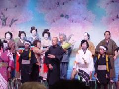 途中、突然に兄に殺されそうになって驚き、また、夫が死んだことを知って嘆き悲しむおかるの姿をはじめとして多くの者に親しまれてきた名場面であり、当日は約1時間に渡っての熱演が見られました。 第二部の白波五人男は、10名の子どもたちによる演目で毎回人気があり、今年は藤野南小の3年〜6年生の8名と藤野中2名が見事に演じて小銭を包んだ多くのおひねりが舞台に投げ入れられました。