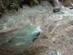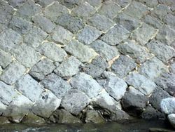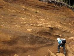 | 相模原市西部を流れる道志川は相模川の主要な支流の一つです。山梨県山中湖村と道志村の境界、山伏峠付近を源流とし、相模原市緑区三ケ木付近で相模川と合流します。道志川の上流部には富士山が噴火したときの噴出物や丹沢山地の中心部をつくっている岩石がみられます。 富士山の噴出物は相模原でみられる関東ロ−ム層とよく似ていますが、こちらの方が厚く堆積しており、層がはっきり見えています。含まれている溶岩の破片も相模原のローム層中のものよりも大きなものが多いです。富士山が近いため噴出物の粒も大きく、地層も厚くなります。また、道志川の護岸には天然石が利用されているところもあります。使われている石は玄武岩で、富士山の溶岩の可能性が高いです。