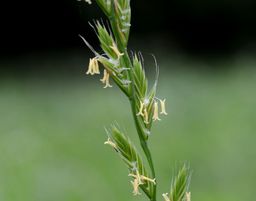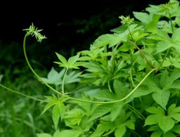 中でも、5月頃から道ばたや、草刈りがあまり行われない草地などにはびこるネズミムギやカモガヤは、代表的な原因植物です。写真を見れば、おそらくご近所で普通に目にされているのに気付くことと思います。花弁が無いのでわかりにくいのですが、雄しべの葯(やく)が飛び出している時が、開花。つまり、花粉をたくさん飛ばしている時です。 もちろん、花粉症の原因となるイネ科植物はこの2種だけではありません。野外で見られる、葉が細長くてイネやアワ、ヒエなどに似た形の植物はほとんどイネ科だと思って間違いありませんし、花粉症の原因となる可能性があります。じつは、イネも原因植物の一つです。8月頃、水田の近くで花粉症の症状が現れる人はイネに反応しているかもしれません。 ところで、花粉症の複合的な原因の一つに、自動車の排気ガスによる大気汚染が疑われています。ネズミムギやカモガヤがクローズアップされるのには、花粉の飛散量が多いことに加え、市街地との相性の良さがあるのかもしれません。 8月から秋にかけては、もう一つ強力な原因植物があります。それは、カナムグラです。茎に小さなとげがびっしりと生えていて、他の植物やフェンスなどにからみつく、つる植物です。花はやはり、花弁が無くて目立たないのですが、開花期にこの植物を揺らすと、もうもうと煙のように花粉が舞います。 こうして見てみると、冬を除いて一年中、花粉症の原因植物が咲いていることになります。私も何を隠そう、イネ科やカナムグラに反応しやすい花粉症です。植物を扱うことが多いだけに、悩ましい問題です。野外調査に出る時は、季節やフィールドの環境によって事前に抗アレルギー薬を飲むなど、花粉症のスイッチが入る前に手を打つようにしています。(生物担当 秋山幸也)
