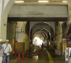 この国道駅では太平洋戦争中に受けた米軍の機銃掃射による弾痕が見られ、今も残る戦争の爪あとが印象的でした。最後に鶴見線終点の海芝浦駅の海浜公園から、現在の鶴見川河口が東京湾に至る遠景を楽しんだ後、出発点の鶴見駅に戻って解散となりました。