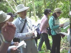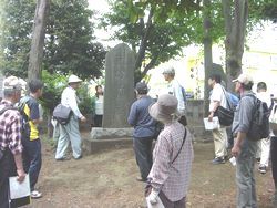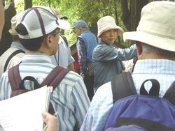 | 毎回、本欄の「ボランティアの窓」でも紹介しているように、本館の民俗分野の市民の会である民俗調査会Aの活動として5月と11月に「民俗探訪会」を実施しており、今年度も5月14日(水)に第5回目の「民俗探訪会」を行いました。今回は、上溝地区の南部から下溝北部にかけて歩くもので、こうした催しはどうしても同一の地域内を歩くものになりがちですが、今回は中央区上溝から南区下溝へというように、区をまたいで歩くというコースを設定しました。 4月15日号「広報さがみはら」や博物館のホームページで会員以外の市民の皆様からの参加者を募集したところ、40名以上の方からの応募があり、野外を数時間歩くという安全性の観点から抽選となりました。当日は、28名の参加者と会員11名で、相模線の番田駅から「相模原浄水場」バス停まで、約3時間のコースを歩きました。当日は暑さが心配されたものの、通り抜ける風はまだまだ気持ちよく、無事に実施することができました。
