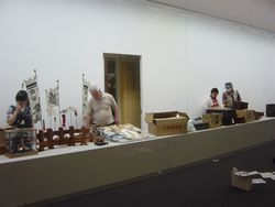 この福の会が展示資料の選定から実際の展示作業も担当した収蔵品展「蔵の中の世界2~市民の力で博物館資料へ~」を、5月24日(土)から6月29日(日)までの会期で行っています。今回は、福田家の蔵にあった実に多くの衣類やお節供に贈られた三月人形(御殿飾り)などに加え、福の会が福田家資料の整理とともに開始している別の資料についても展示しています。例えば、福田家がある南区下溝・新屋敷地区で所有していた講中道具一式で、講中道具はかつて冠婚葬祭を自宅で行っていた時代に、訪れる多くの客に出す料理の食器やその他の諸道具を地区で共同保管し、必要に応じて各家で使うことができたもので、講中道具は市内及び周辺地域で一般的に見られました。また、近年まで南区当麻の中・下宿地区で行われていた地神講と稲荷講に関わる資料では、講が解散することに伴い、掛軸や帳面などの資料が長く後世まで残ることを願って博物館に寄贈いただきました。なお、昨年の展示でも実施した、福田家の御当主や福の会の会員が、整理作業の苦労や楽しさなどを交えて展示資料についてお話をしたり、いくつかの衣類に触れたりすることもできる「展示説明・展示を語ろう」を6月8日・6月22日(いずれも日曜日)の午前10時30分~午後3時30分(この間随時)に行いますので、ご希望の方は是非おいでください。
