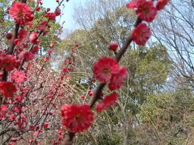 紅梅です。 もっとキレイに咲いていたのになあ...。 なんでうまいこと行かないんだろう..(涙)