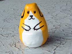 会津若松市の山田民芸工房で作りました。 好きなように色付けしてくださいってことで、とてもやりやすかっ たです。 ちゃっぴー起き上がり小法師。 本当は、茶色で作りたかったんだけど、色がなかったから黄色 にしてみました。 転がしても、起き上がるよ! |