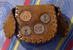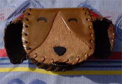 同じく専門学校にいたときの作品。 市販の皮細工のセットを使って。 うしろは、小銭をリアルに(?)かたどって見ました。 かわいいんだけど(自分で言ってる・・・)バックの中 未使用なので、使い勝手は謎。 でも満足なみきすけなのでした。