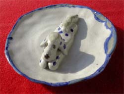 専門学校での作品。 箸置きを作るつもりだったけど、小さくて網から落ち 色は染めてもらったのですが、注文どおりに染めて 普通の食器には使えないので、アクセサリー入れ |