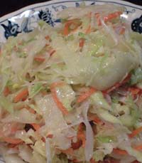 キュウリを混ぜたり,ピーマン、又 かまぼこ,ハム、その時々で家にあるものを入れて食べると