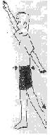 1.腕を頭の後ろで組み、肩幅よりやや広めに足を開く。背筋は真直ぐに伸ばす。