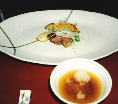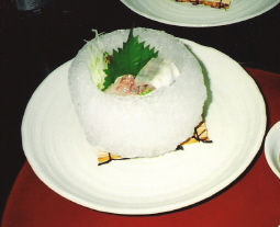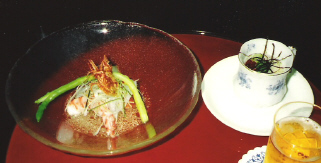 海鮮サラダ&ハモのとろろ掛けみたいなの