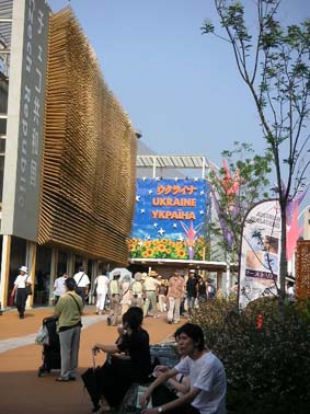 ウクライナ館でスタンプを押すついでに国際交流。 カウンターのおにいさんにメッセージをお願いした。