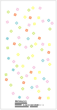 | 封筒 長形3号 テンプレート | 封筒のスタンダードサイズ、長形3号の印刷テンプレートです。 デザインは、とてもかわいらしい、花柄です。色調はパステルカラーであわせてあるので、見る人に優しさや、おとなしさ、かわいらしさなどを雰囲気として伝えます。 雑貨ショップ、カフェなどのショップ用、女性の個人用の封筒などにも、幅広く使える封筒のテンプレートです。 |