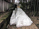 本堂裏には、まだ雪が残っています。ひょっとしたら、本堂の表と裏では、2℃ほどの気温差があるのかも? 中島で雪のあるところはココくらいのものかと思います。竹の葉が入っていますが、ご入りようの方は、早めにお申し出下さい。(#^.^#) |